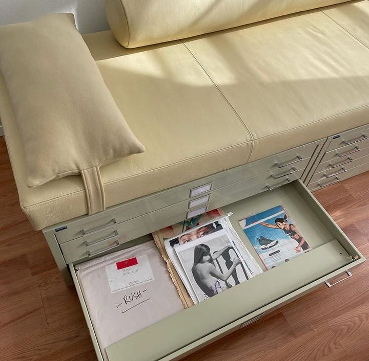 File cabinets, on the other hand, keep showing up in the spaces I’m most drawn to–not just as storage, but as furniture.