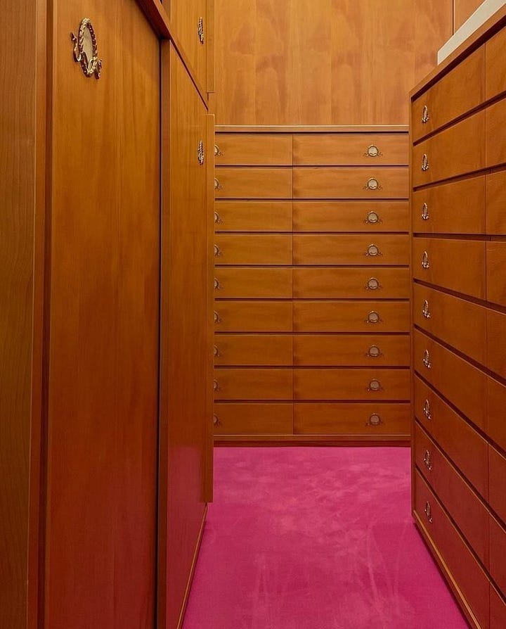 It doesn’t need to be an actual file cabinet to give the effect. A tall stack of narrow drawers does the trick just as well. Repetition, verticality, and shallow depth do most of the work.